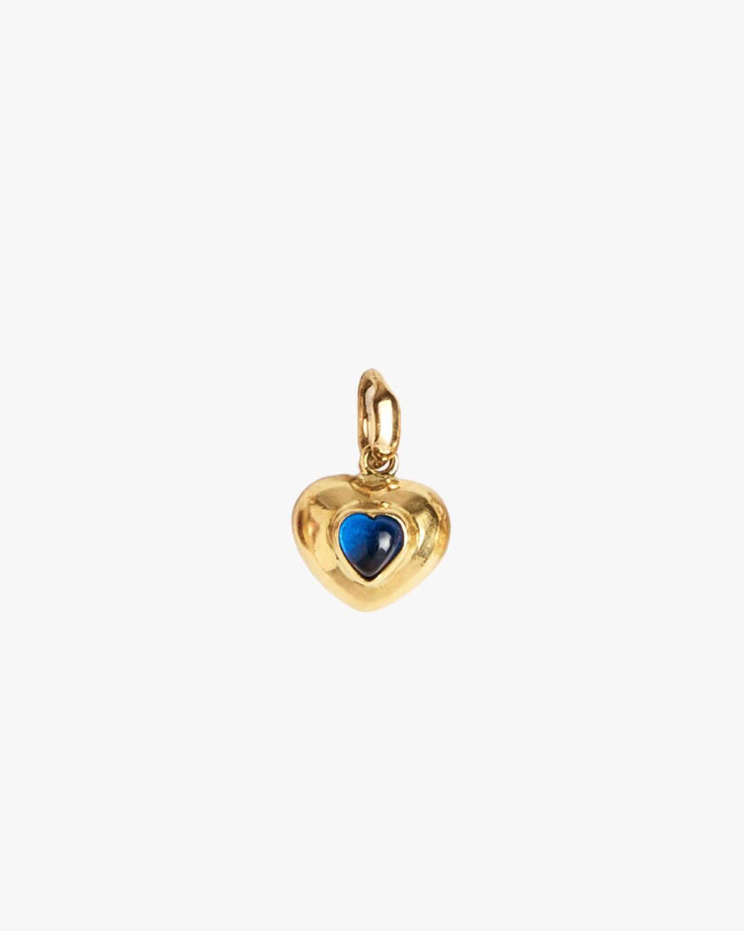 Soft and ethereal blue. The Celestina charm shines through its colored glass globe, delicately set in 18kt yellow gold. A light, playful touch to brighten your everyday chains.