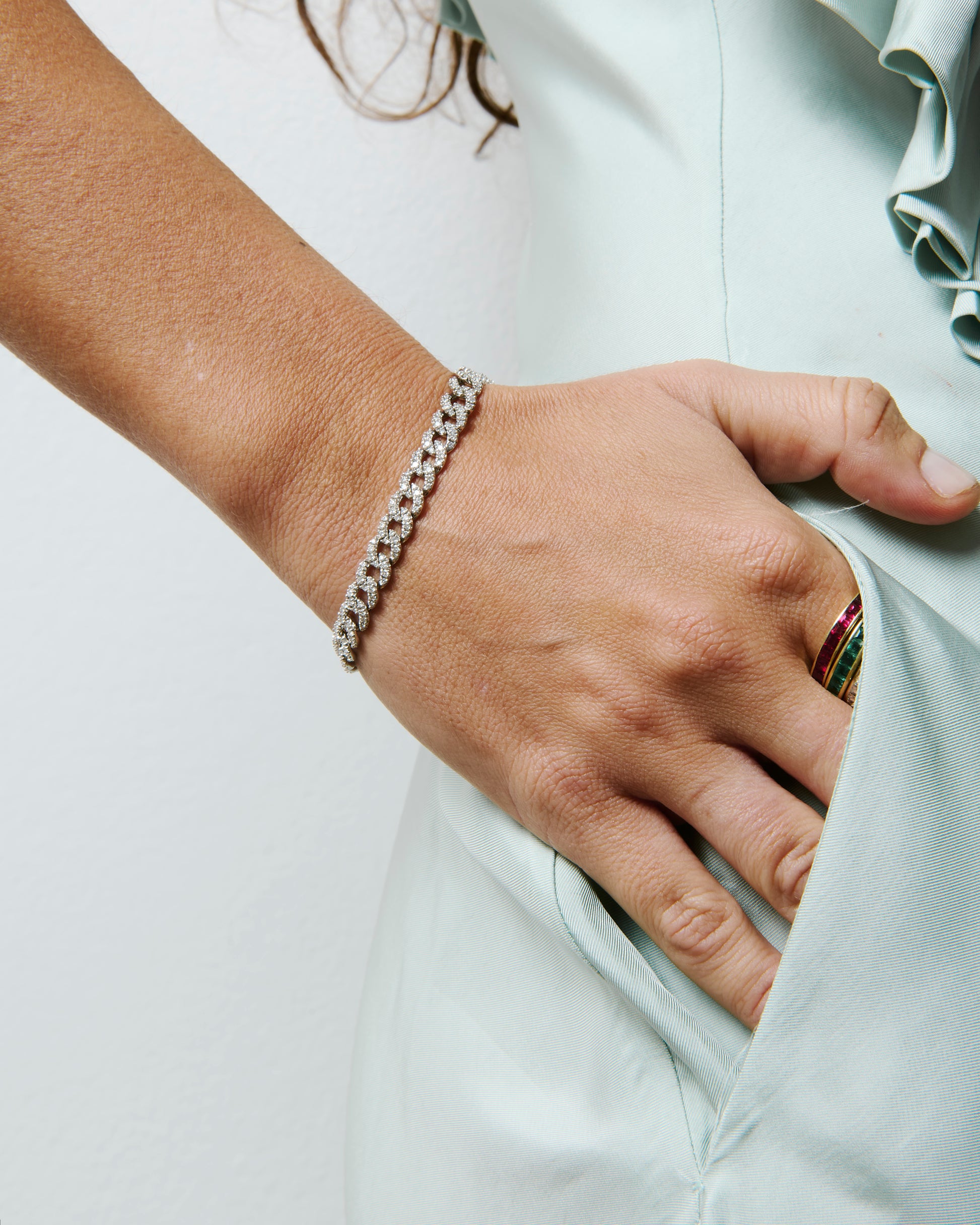 Consuelo is an exceptional vintage bracelet featuring 35 articulated links in 18kt gold and 284 brilliant-cut diamonds in varying sizes for a total of approximately 3.4 carats. A sculptural, precious, and rare jewel embodying the timeless elegance of classic fine jewelry.