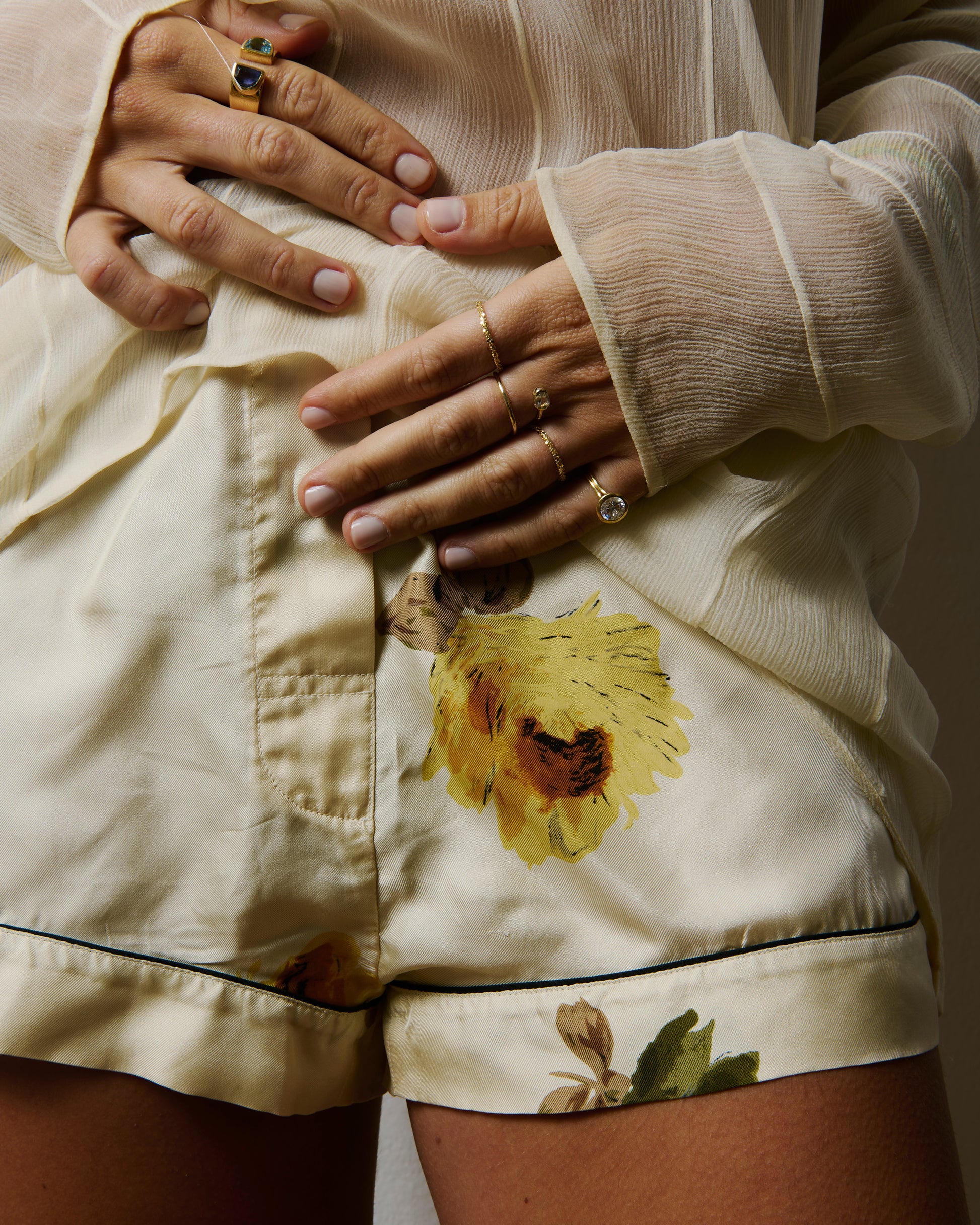 A bold, colorful icon. The Fiorenza ring blends the warmth of yellow gold with the luminous tones of topaz and amethyst. A vintage statement piece with a soft, rounded silhouette that catches the light beautifully.